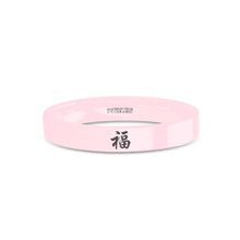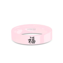 Bless your life and marriage with Chinese good fortune and prosperity! This "fu" character is a popular fixture in Chinese daily life, laser engraved here on a beautiful pink ceramic wedding ring in elegant brushstroke calligraphy. The perfect ceramic wedding band or engagement ring in a polished finish for that special someone. Features: flat surface with pipe cut edges, laser engraving. Thickness: 1.5 mm - 2.3 mm. Weight: 3 - 8 grams. Engravable: Yes.